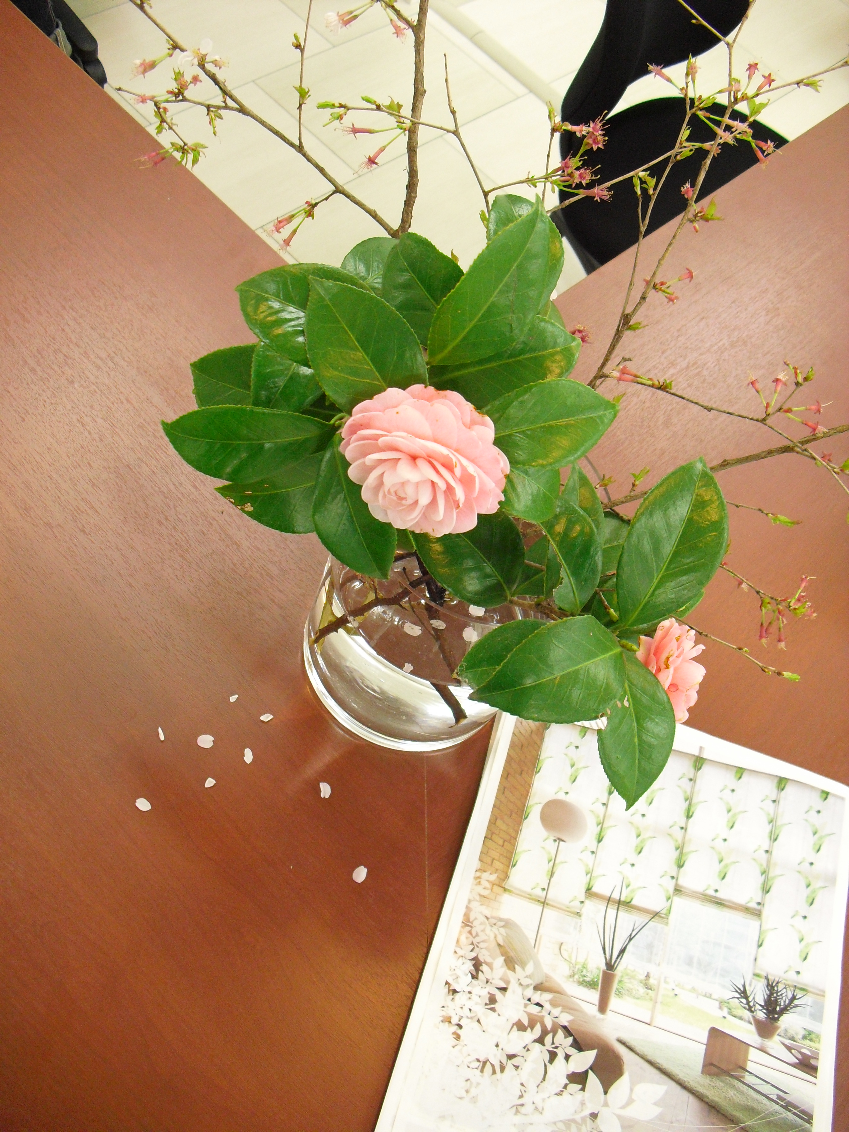 葉桜と共に、ピンク色の椿からも、春の訪れを感じさせられますね。